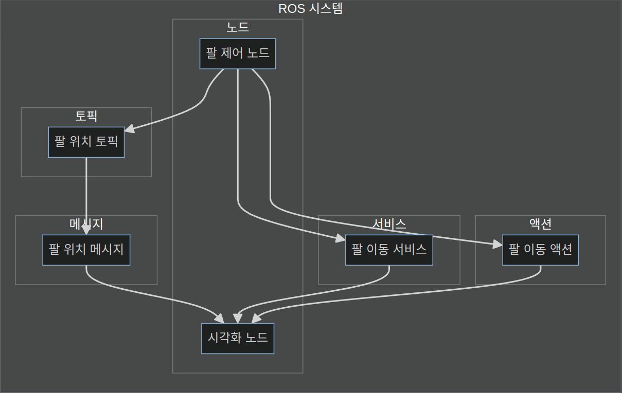 A[팔 제어 노드] -->|메시지 발행| C[팔 위치 토픽]
